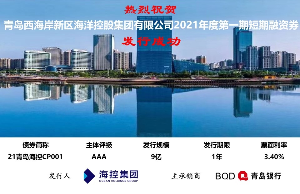 3月2日,海控集團成功發行2021年第一期短期融資券,也是今年新區首支短期融資券,發行規模9億元,發行期限365日,發行利率3.40%,認購倍數為2.15倍。